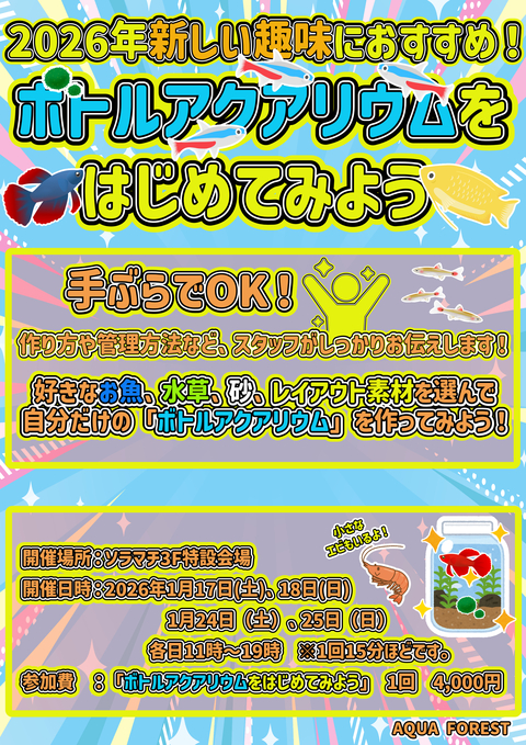 研讨会“2026年新的兴趣值得推荐!让我们开始使用瓶装水族馆!”AQUA FOREST1F イーストヤード 11番地 -