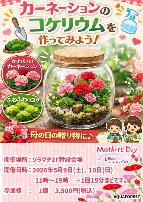 研讨会“让我们制作康乃馨苔藓”AQUA FOREST1F イーストヤード 11番地 -