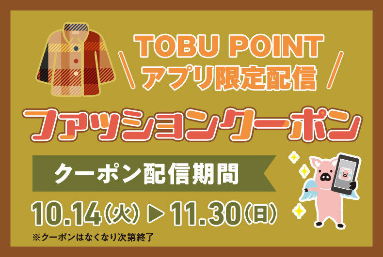托布波5周年感恩节TOBU POINT应用程序限量发行“时尚优惠券”