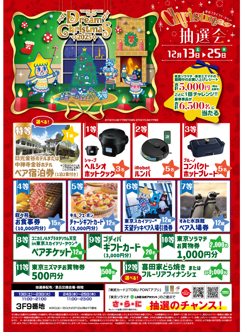 在此期间,你可以挑战每5,000日元(含税,合并)的TOKYO mizumachi和东京晴空街购买收据。