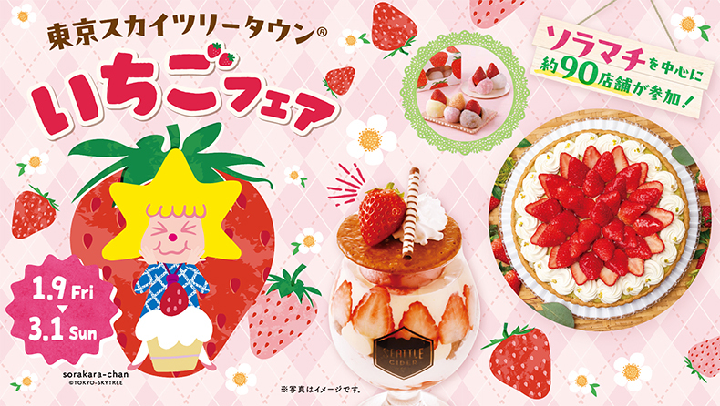 我们将举办“草莓展”。 大约有90家门店参与,主要集中在晴空街!