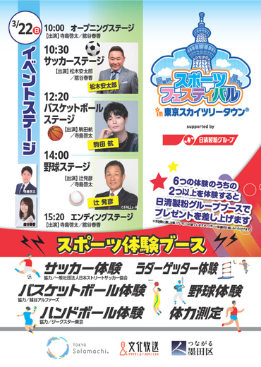 “体育祭东京晴空塔城®第13卷”将于3月21日(周六)和22日(周日)在东京晴空塔城4楼的天空竞技场举行,持续两天。
