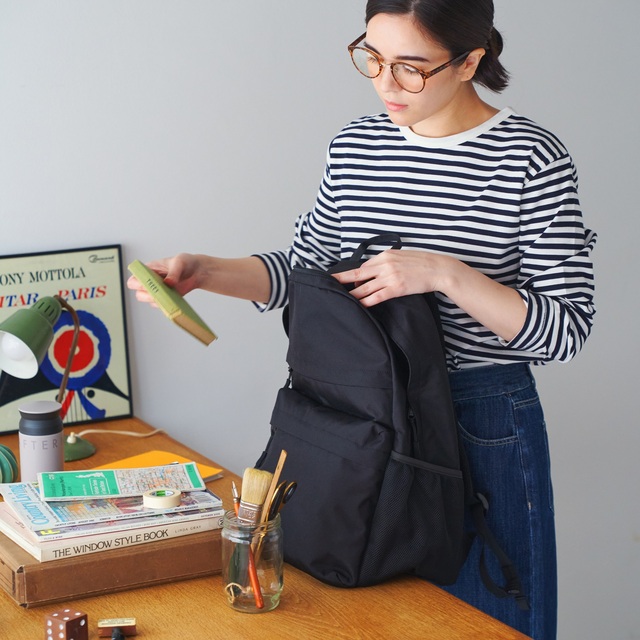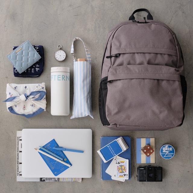 后背包表面的口袋可收纳定期券等想快速取出的物品,两侧的网眼口袋也可当作饮料架使用。