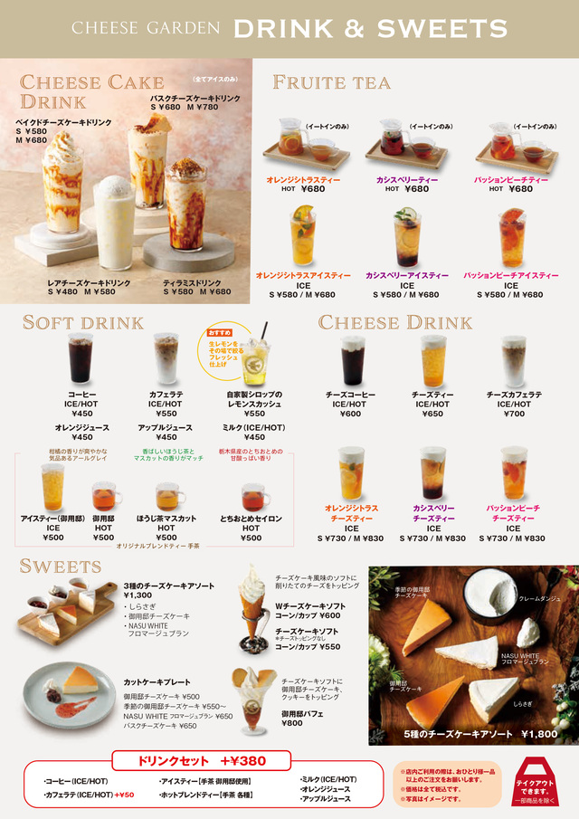 CHEESE GARDEN东京晴空街这将是商店的餐饮菜单。