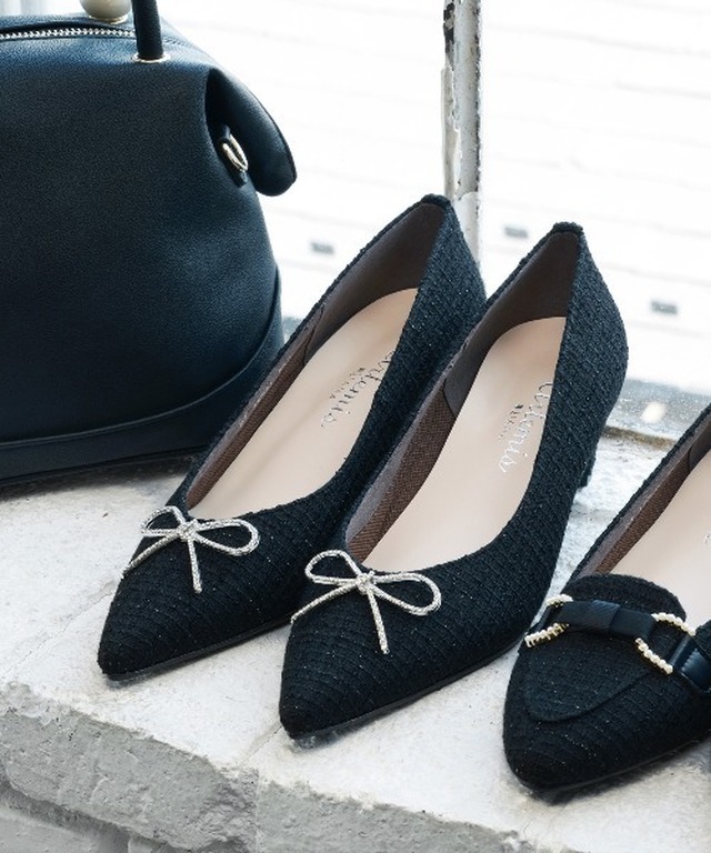 莱茵石的细蝴蝶结非常可爱的浅口无扣无带皮鞋。