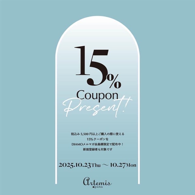 10月23日 (星期四)~10月27日 (星期一)的5天内,仅限DIAMO会员购买5,500日元 (含税) 以上即可使用,发放15%优惠券♡