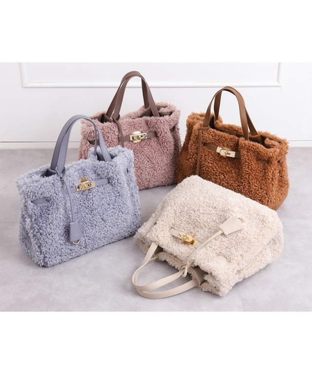由光泽感不同的2种雪纺面料组合而成的大蝴蝶结。