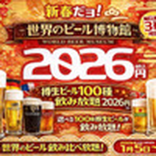 【★1日限定3组★日本最多无限畅饮】 ~新春特别方案2026~世界啤酒100种无限畅饮