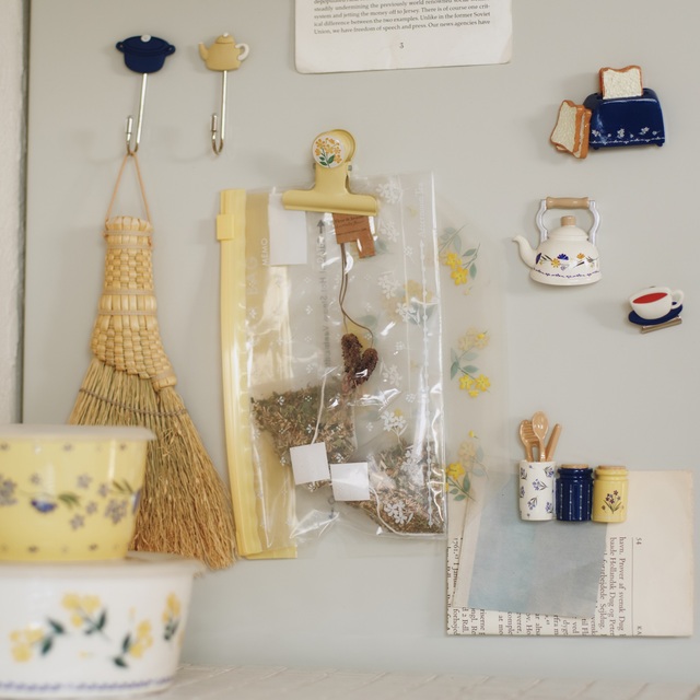 以黄色及蓝色花朵为主题的设计,为厨房增添华丽感。