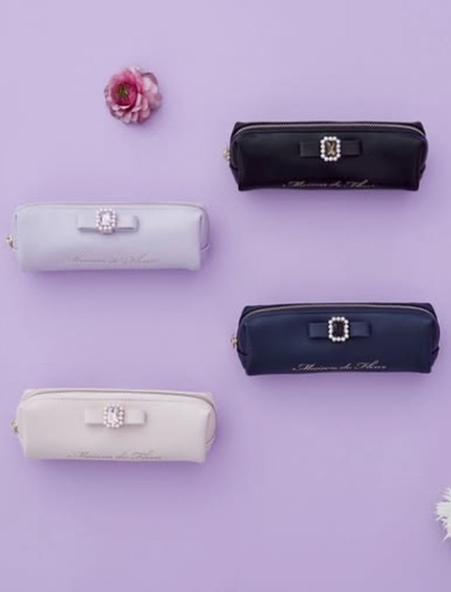 ☑パールビジュー合皮リボンロングポーチ