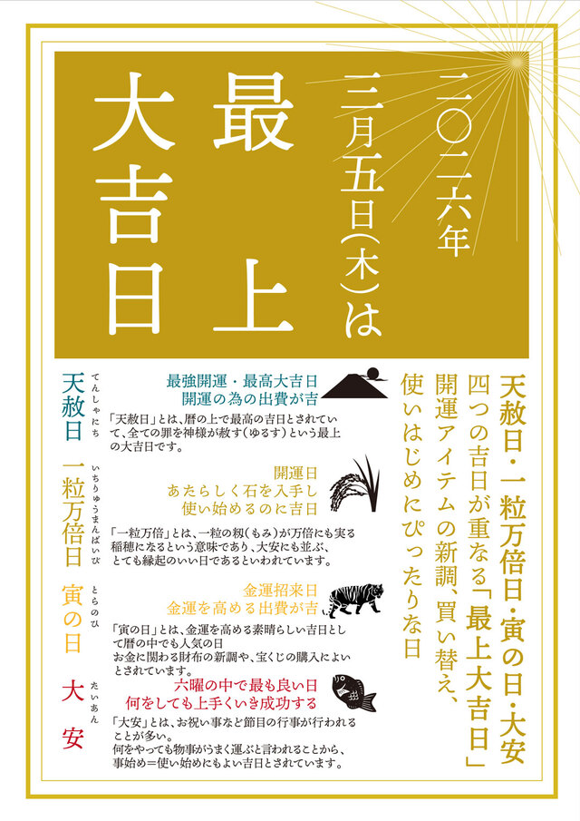 3/5是开运吉日1年只会来几次 【最上大吉日】
