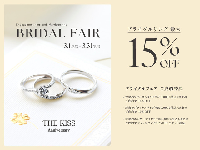 从2026年3月1日(星期日)到3月31日(星期二),我们为注册新娘戒指的客户提供丰厚福利。