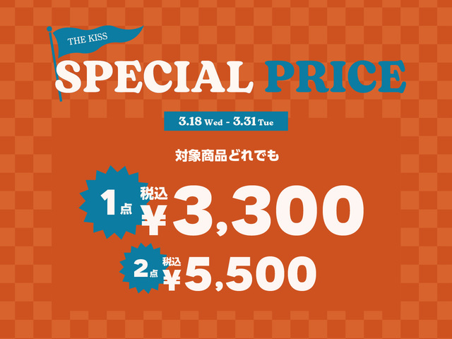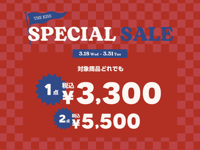 举办SPECIAL SALE“1件3,300日元 (含税) /2件5,500日元 (税) !