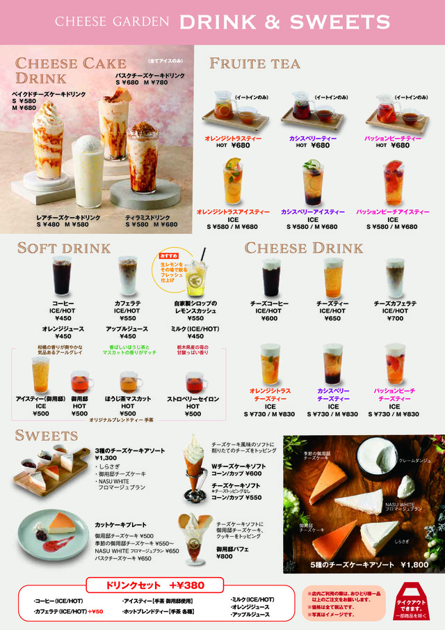 CHEESE GARDEN东京晴空街这是餐厅的豪华菜单。