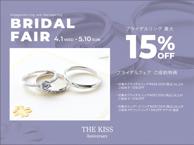从2026年4月1日(星期三)到5月10日(星期日),我们为签署THE KISS周年纪念戒指合同的客户提供丰厚福利。