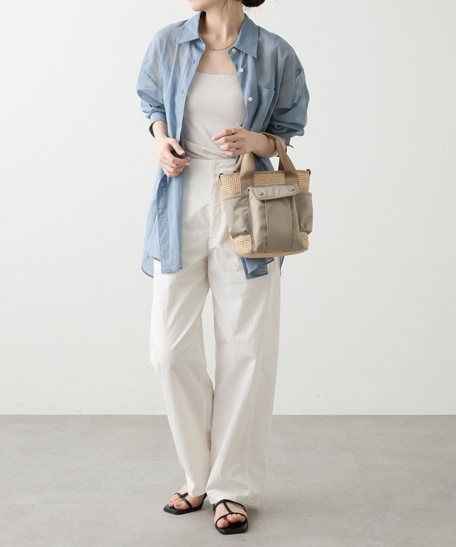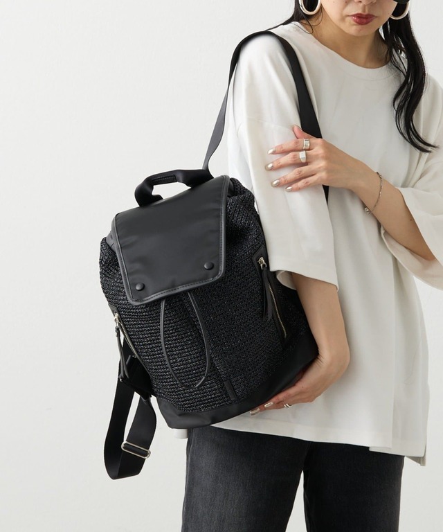 另外,材质让人联想到拉菲亚编织布料的立体质感很有魅力的尼龙。