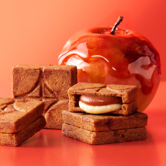 加入焦糖片的香喷喷的松脆饼干,夹着苹果香味的苦焦糖和蛋奶黄油奶油。