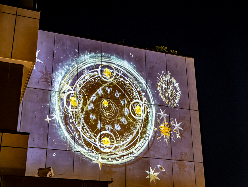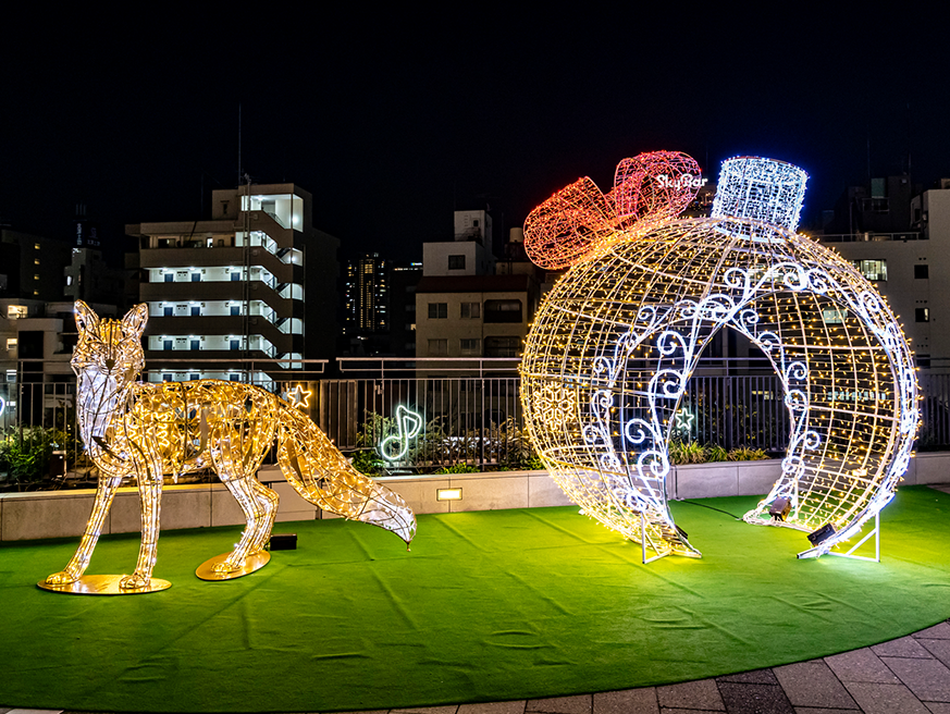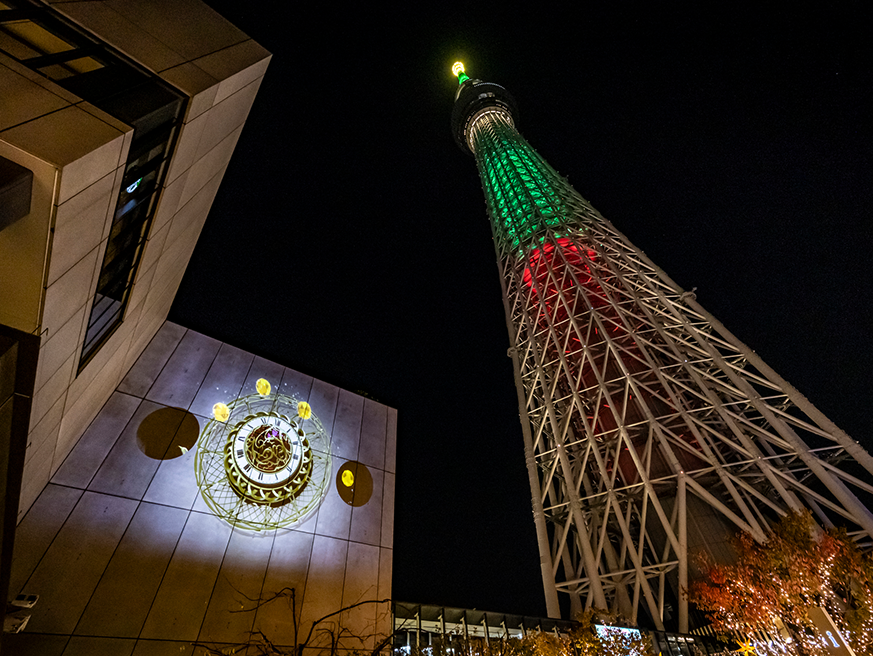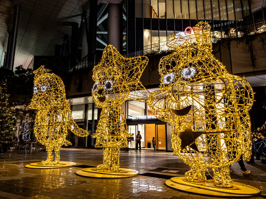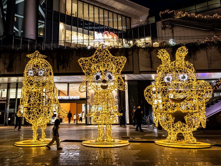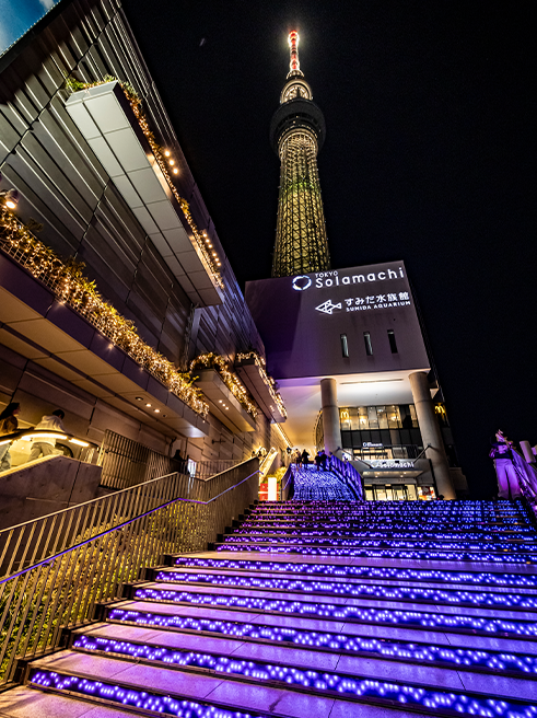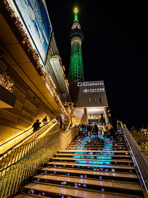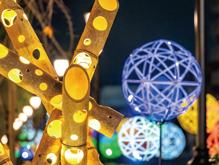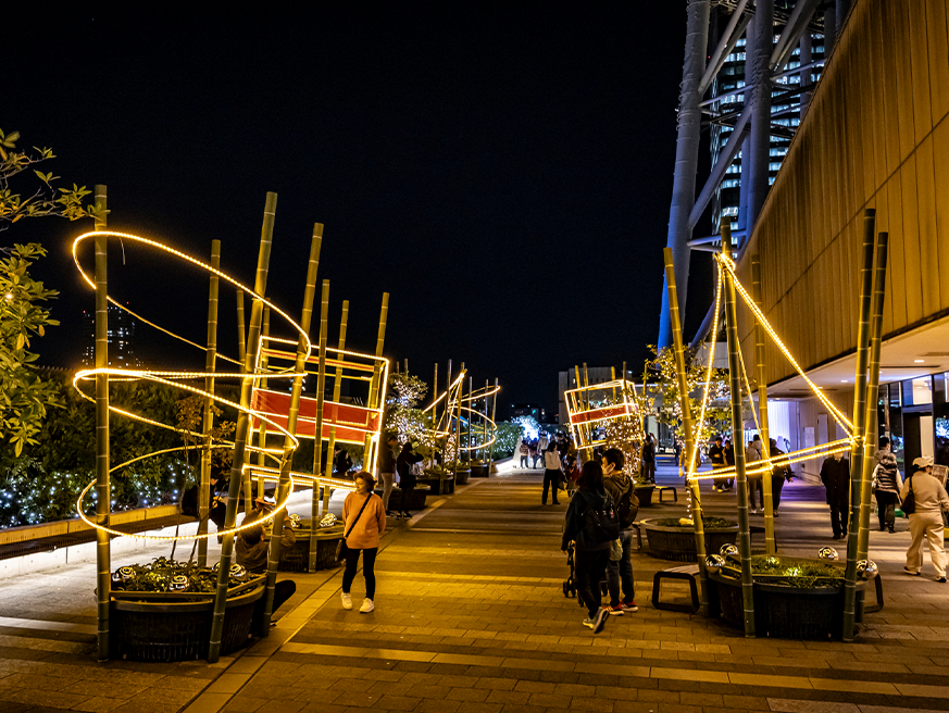 墨田Riverwalk周边,举行使用竹灯的亮灯活动。